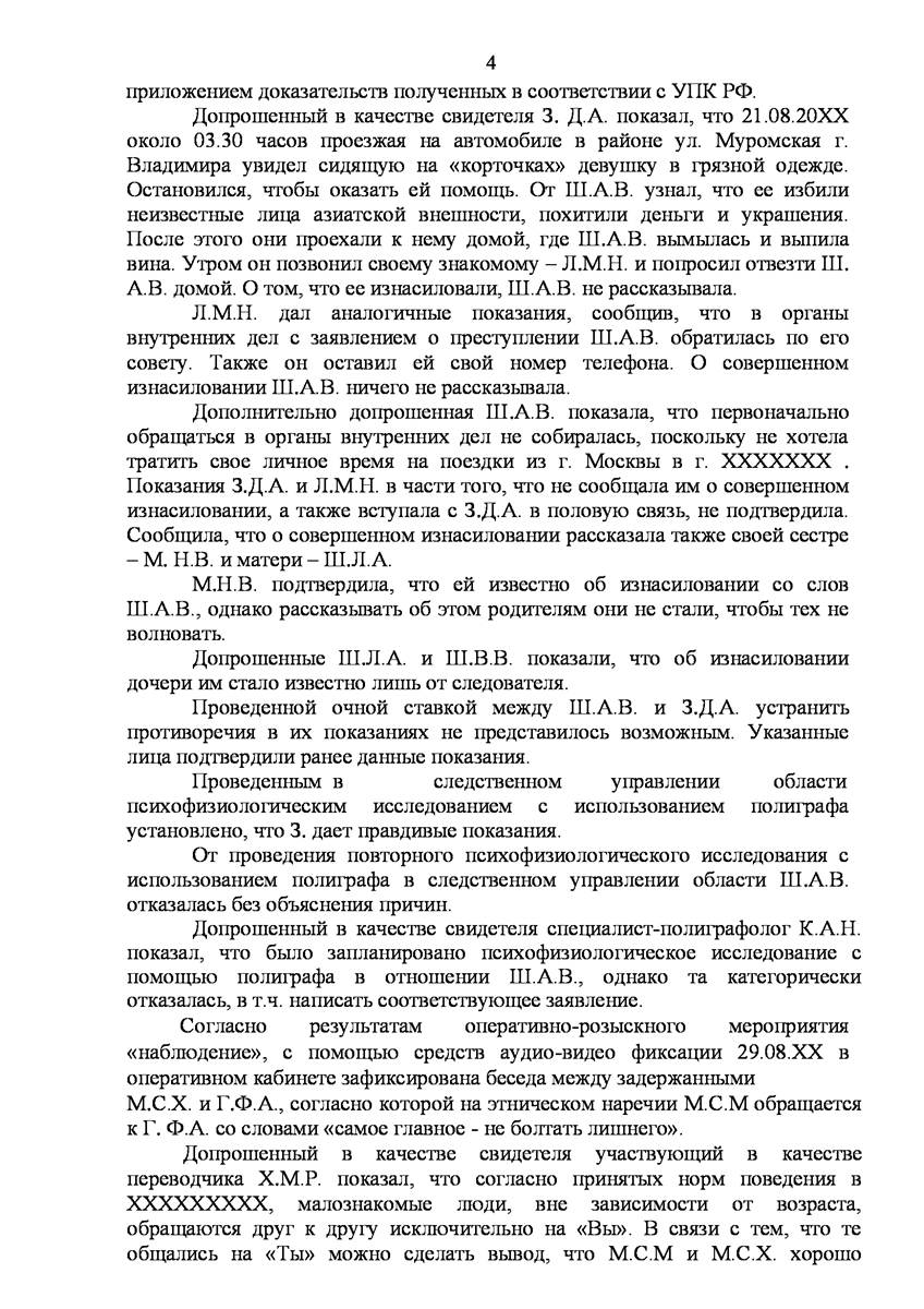Сложностью уголовного дела являлся ряд факторов, среди которых следует отметить: обвиняемые не владели русским языком; в отношении обвиняемых была избрана мера пресечения в виде заключения под стражу; на первоначальном этапе расследования ходатайства стороны защиты полностью игнорировались следствием, а если и рассматривались то только после того как доказательства свидетельствующие о невиновности обвиняемых утрачивались в связи с истечением сроков их хранения на носителях (записи камер видеонаблюдении), либо выездом за пределы Российской Федерации свидетелей по уголовному делу; привлечением следователем в качестве понятых и статистов при производстве следственных действий граждан других государств, многие из которых в дальнейшем покинули пределы Российской Федерации, некоторые из них на момент производства следственных действий даже не владели русским языком.
